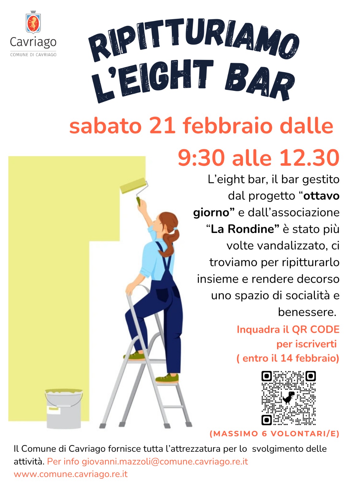 «L’Eight Bar è un presidio di inclusione e partecipazione che appartiene a tutta la comunità – dichiara Luca Brami assessore alla Partecipazione del Comune di Cavriago –. Gli atti vandalici non colpiscono solo un muro, ma il valore che questo luogo rappresenta. Rispondere con il volontariato significa affermare ancora una volta che Cavriago una comunità capace di mobilitarsi quando serve, per difendere e valorizzare i luoghi che costruiscono inclusione e futuro.”