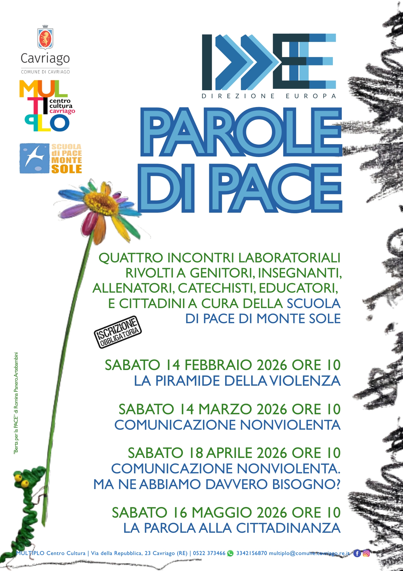 Cavriago, 11 febbraio 2026 - In attesa del Festival Europa, ritorna al Multiplo la Scuola di Pace di Monte Sole per un percorso partecipativo e laboratoriale dedicato alle parole e alla comunicazione nonviolenta.