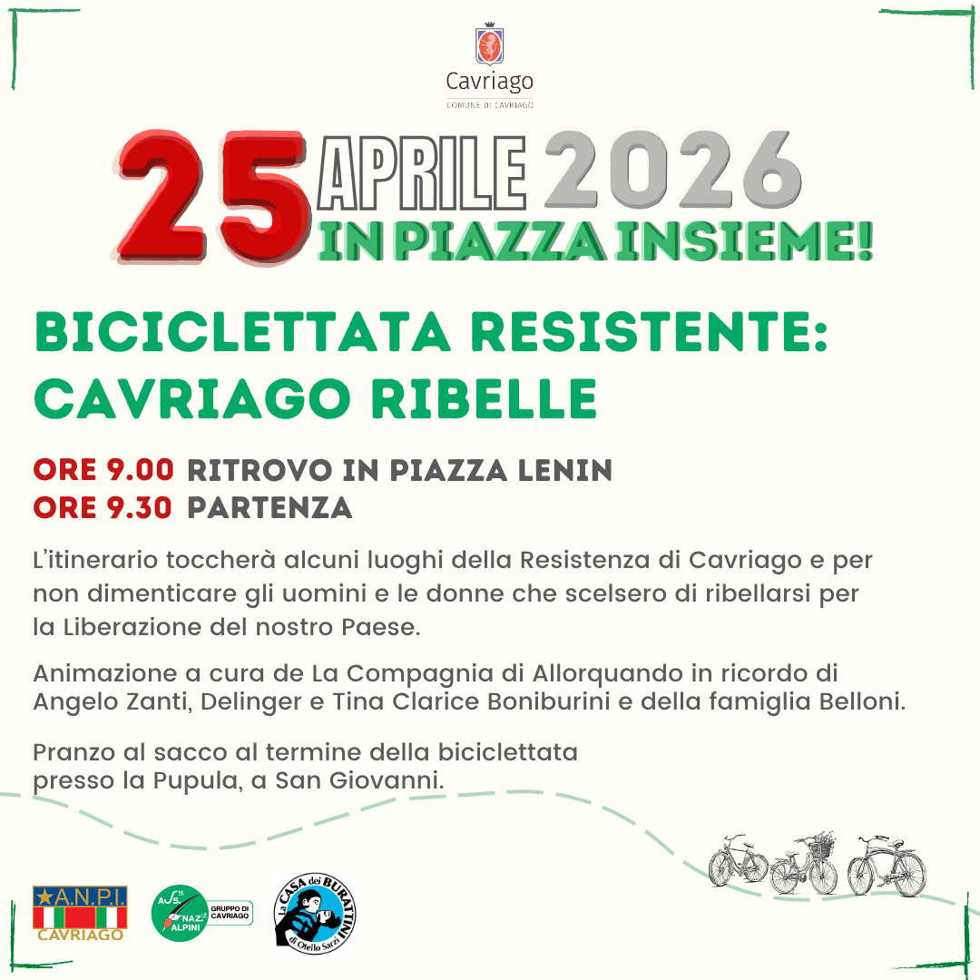Cavriago, 25 marzo 2026 - In attesa delle celebrazioni e degli eventi per l'81° Anniversario della Liberazione, ANPI e Comune di Cavriago organizzano sabato 28 marzo 2026 una passeggiata nei luoghi del paese che raccontano la storia, in collaborazione con il Gruppo Alpini di Cavriago.