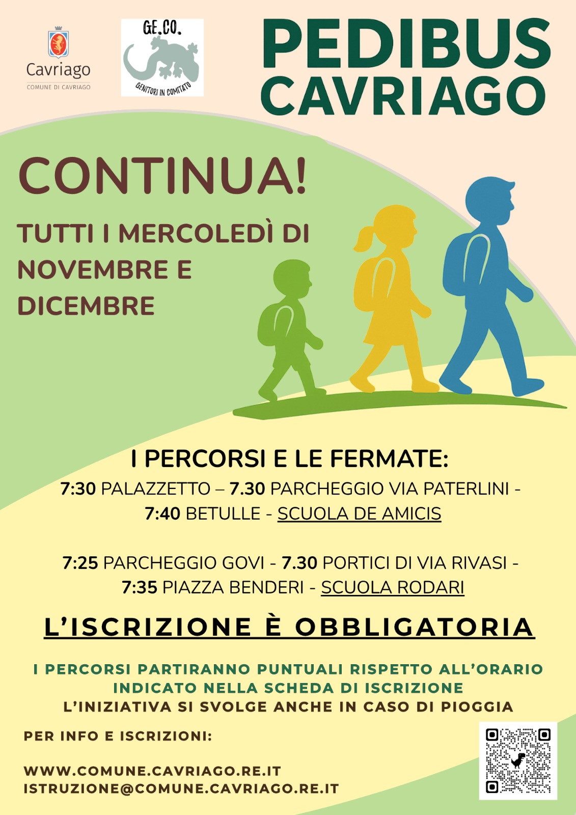 Il Pedibus di Cavriago non si ferma: dopo il successo delle prime settimane, il progetto di mobilità sostenibile promosso dal Ge.Co. – Genitori in Comitato, in collaborazione con il Comune di Cavriago, proseguirà fino alla fine del 2025.