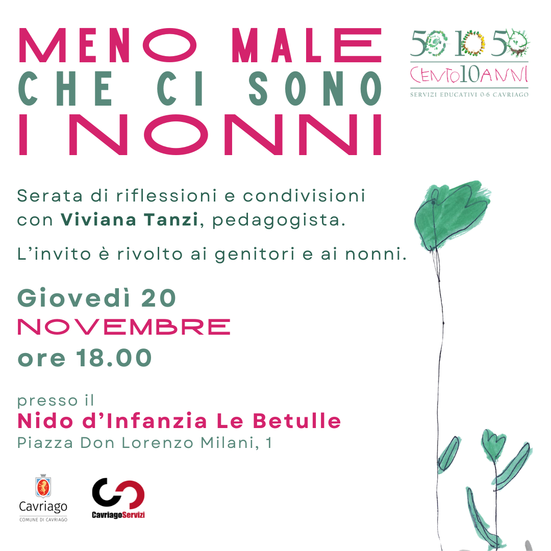 Giovedì 20 novembre 2025 alle ore 18.00 l'appuntamento è al Nido d'Infanzia "Le Betulle" per una serata di dialogo e confronto con Viviana Tanzi, pedagogista, sul valore e l'importanza della relazione tra nonni e nipoti
