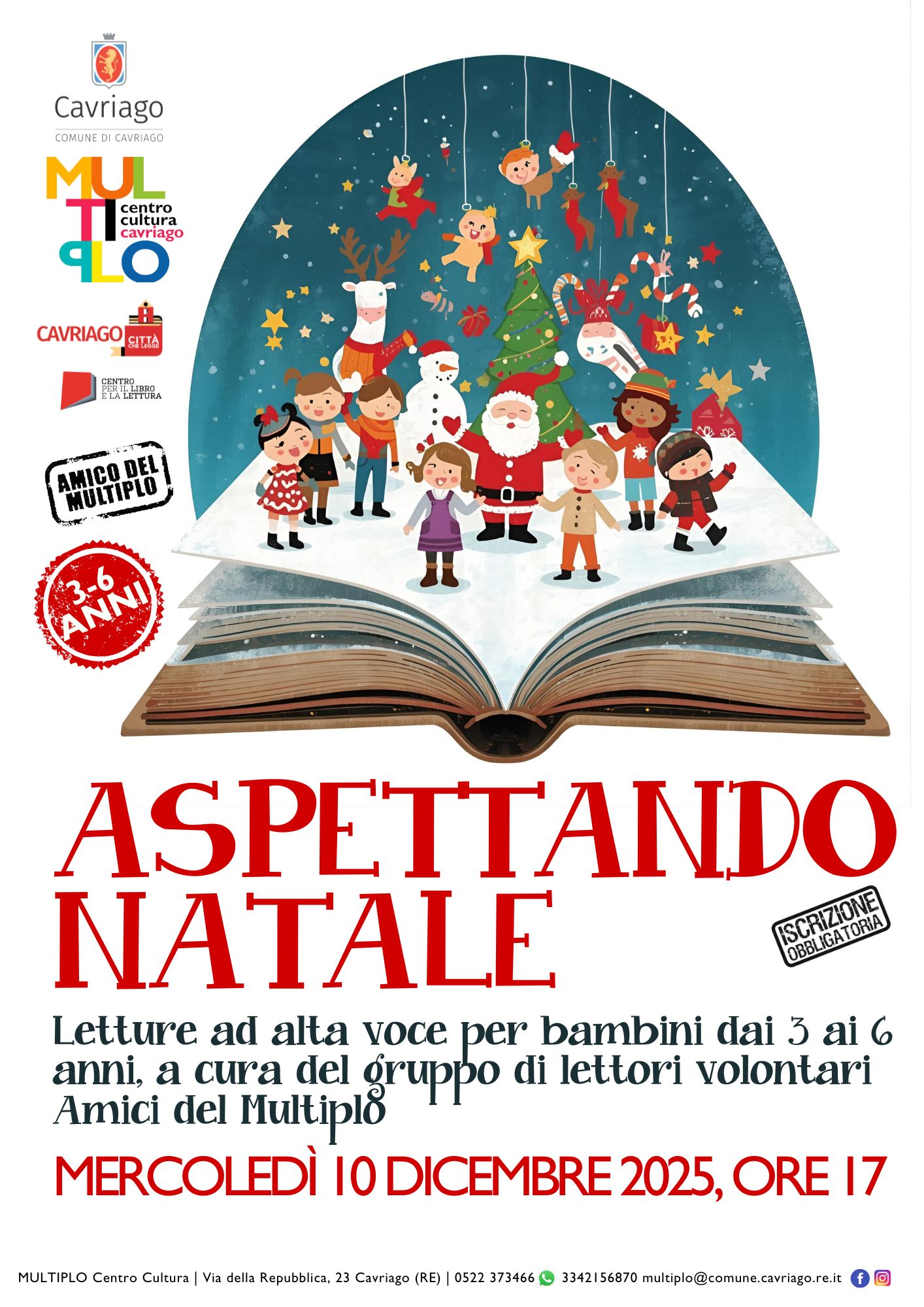 Iscrizione obbligatoria a 0522 373466 multiplo@comune.cavriago.re.it