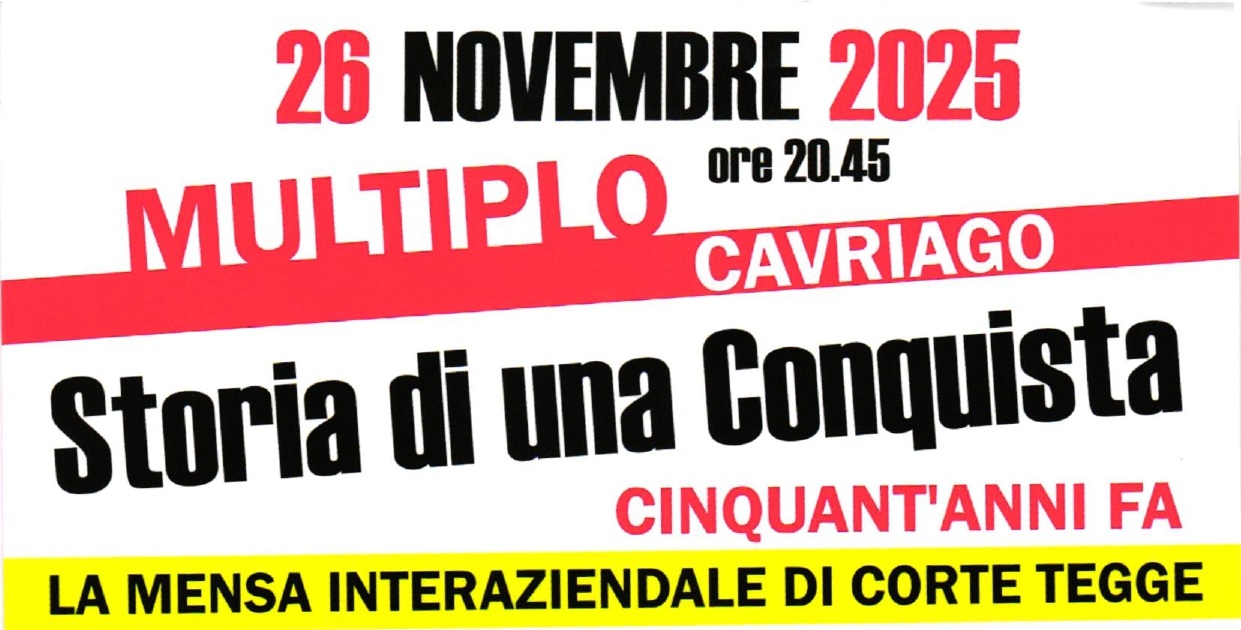 Mercoledì 26 novembre 2025 alle ore 20.45 al Multiplo di Cavriago è organizzato un incontro per ripercorrere la storia della mensa interaziendale di Corte Tegge.