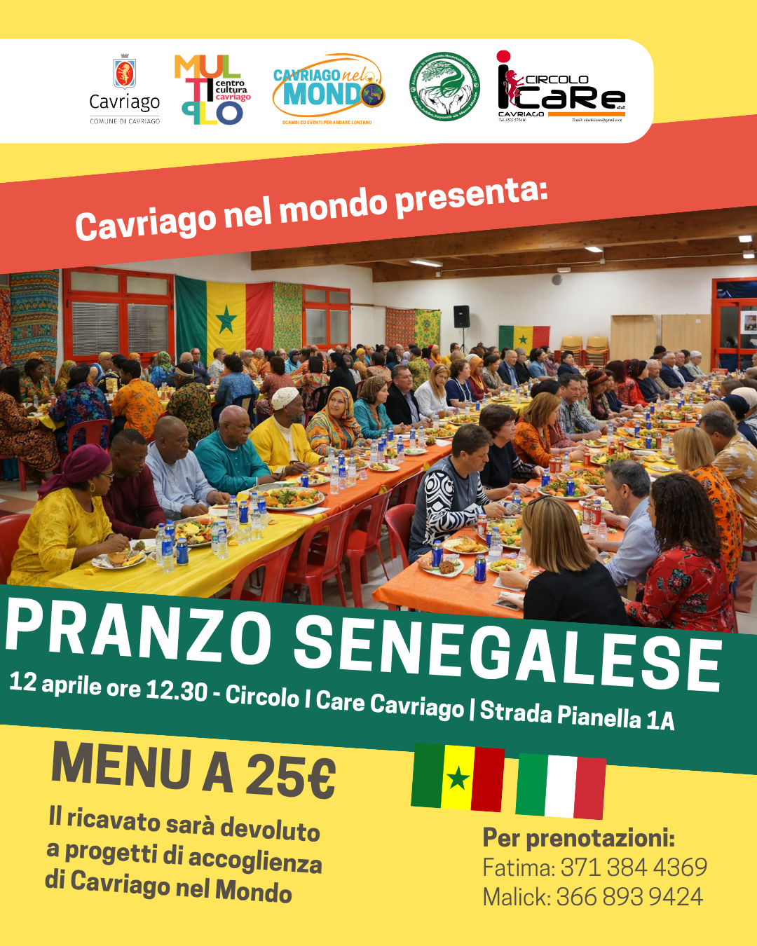 Domenica 12 aprile alle ore 12:30, presso il Circolo Arci I Care Cavriago (ex Bocciodromo), si terrà un pranzo senegalese di beneficenza aperto a tutta la cittadinanza.